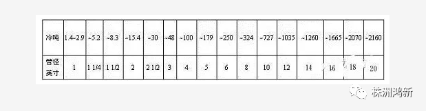 或參考以下列表選擇冷卻水管管徑: